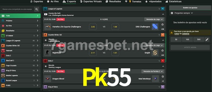 O Pk55 oferece uma grande seleção de opções de apostas em e-sports com probabilidades competitivas
